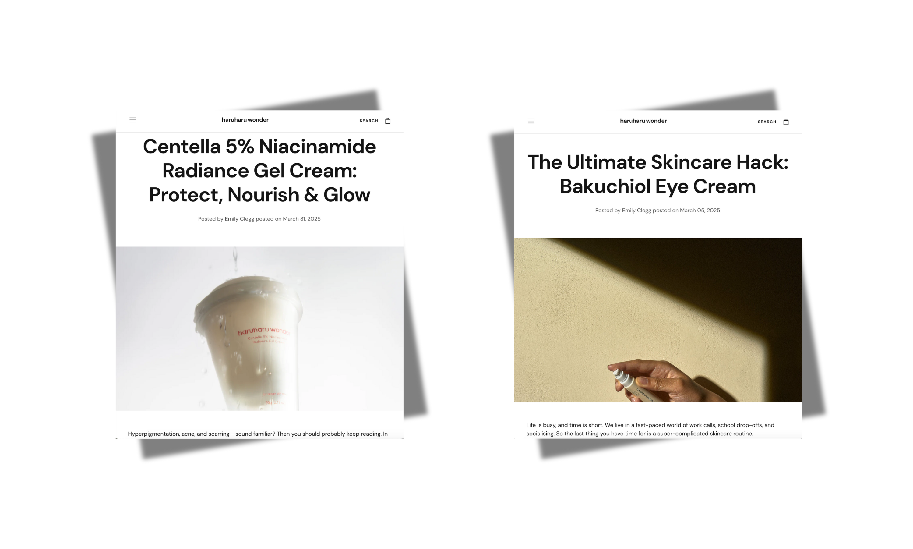 I worked with the Korean beauty brand, haruharu wonder, to create optimised blogs based on trending topics and products. You can read them here and here.