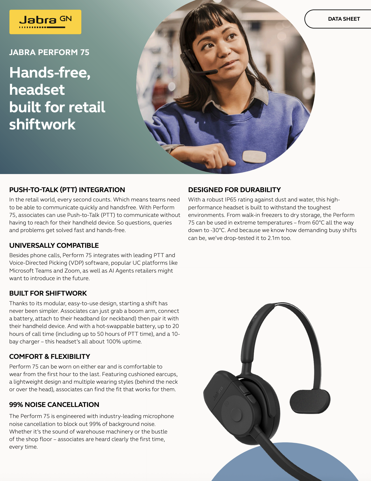Supporting the product team at Jabra, I was brought on to deliver a full copy toolkit for the launch of their latest product: Jabra Perform 75. Below is just a snapshot; I create a variety of content, from tag lines to long-form product summaries.